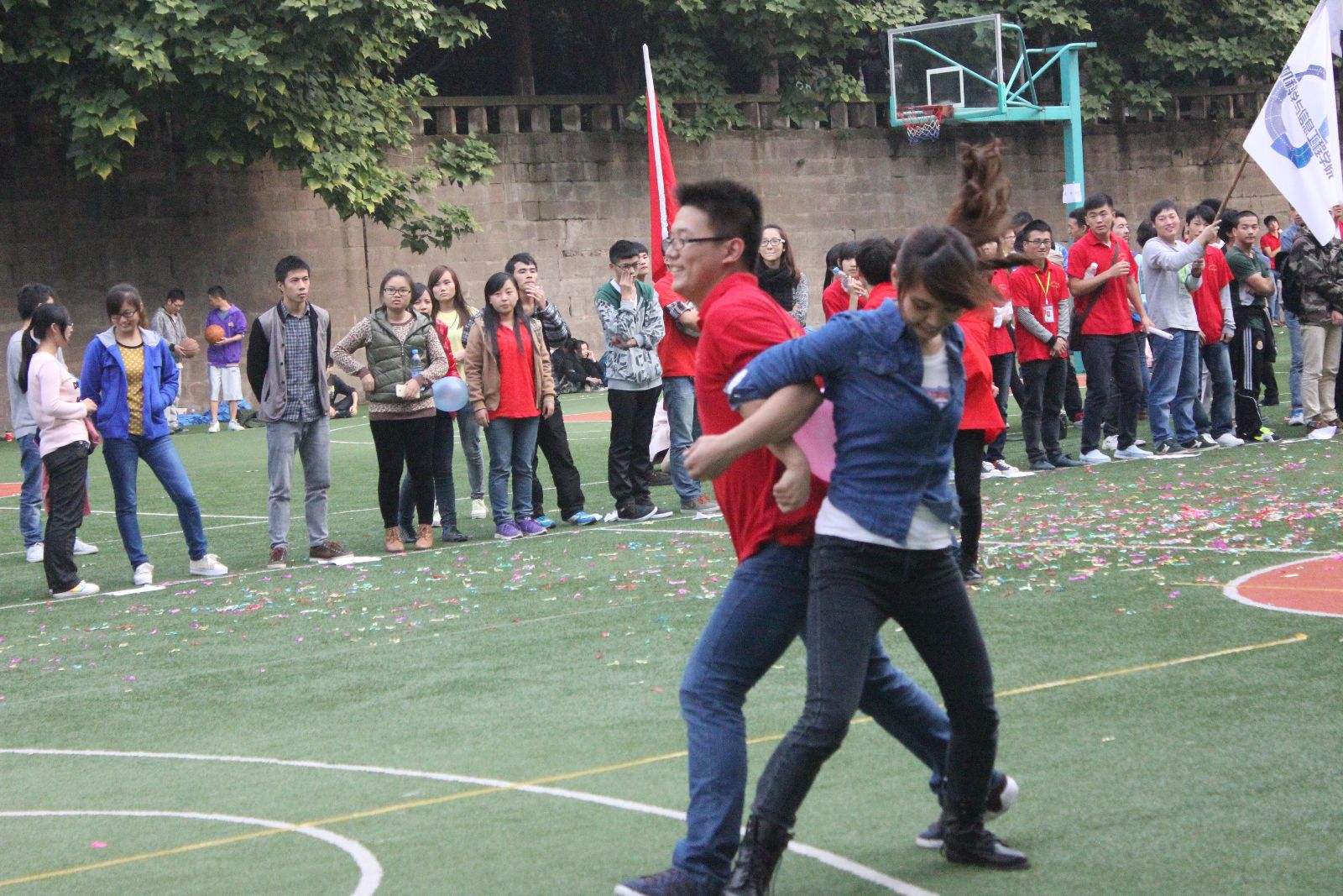 本着“开心第一,比赛第二”的精神理念,选手们都积极的投入到比赛中去。本次趣味运动会有别于传统的运动会,将竞技与娱乐相结合,采取男女搭配的比赛方式,着重于同学们的参与和合作。“鹊桥会”、“小腿勾棒”、“两人三腿”、“八点一线”等项目让人眼前一亮。竞技场上,同学们朝气蓬勃、斗志昂扬,只为给本院增添一份荣誉。比赛中,同学们挥汗如雨,奋力拼搏,齐心协力,领悟了团结的精髓。公司同学团结一心,在多个项目中表现出色,获得了“鹊桥会”项目第五名的优异成绩。