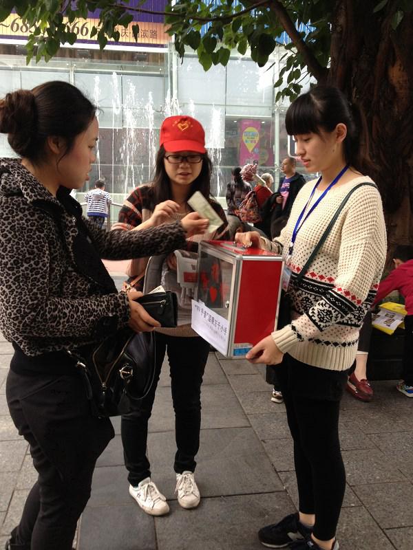 2013年11月9日,best365官网入口注册义工志愿者协会在沙坪坝举行了义卖报纸活动,其目的是为了给雅安、彭水贫困地区的孩子们筹款,为了让这些买不起手套的孩子能在冬天能戴上手套,让他们的小手不再冰冷,让他们的心不再孤单。计信义协的干部干事积极参加了这次本次活动。