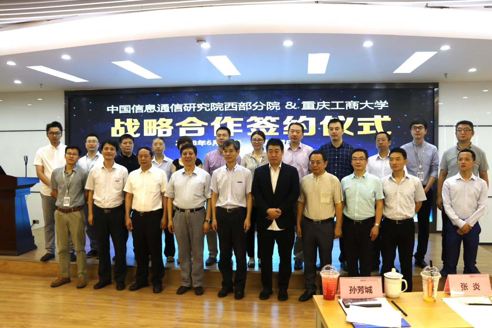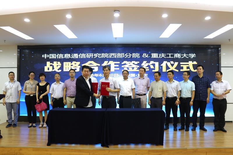 2018年6月30日上午9:30,公司与中国信息通信研究院西部分院(重庆信息通信研究院)在南岸区物联地带•渝报告厅举行了战略合作签约仪式,董事长孙芳城教授与张炎副经理共同签署了战略合作协议。中国信息通信研究院副经理何桂立,中国信息通信研究院西部分院副经理张炎,公司董事长孙芳城教授,best365官网入口注册、best365官网入口注册分党委书记段远鹏教授、经理何希平教授、副经理杨光祥教授、副经理胡卫军副教授以及公司相关专业系主任、人工智能研究院相关研究所所长等专家共同出席并见证了签约仪式。