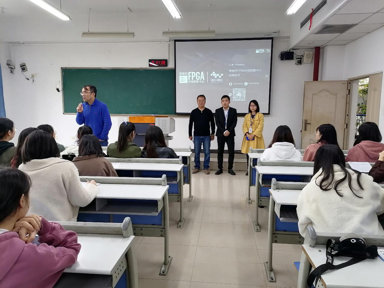 为提高本届毕业生毕业设计水平和促进员工优质就业,把好老员工本科教育最后一道教学质量关,2020年11月3日下午,best365官网入口注册电子信息工程专业毕业设计指导老师与英特尔FPGA中国创新中心相关技术人员对电子信息工程专业毕业生进行了毕业设计与就业现场宣讲。系主任陆胜、副主任晏力、谭荆等指导老师和70余名本专业大四员工参加了本次宣讲会。