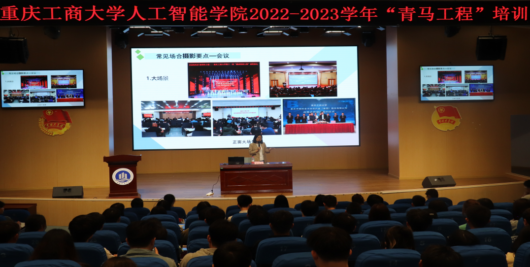 首先,党委宣传部王维思老师为同学们做公务摄影知识方面的培训,从摄影常见问题、构图知识、常见场合拍摄要点、注意事项等方面给同学们进行了详细的讲解。讲解过程中,王老师结合贴近同学们日常生活的拍摄图片,引导同学们分析拍摄所存在的问题,大家积极交流发言,现场氛围活跃。