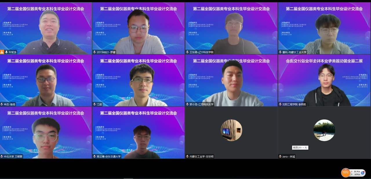 2023年5月20日上午8时,第二届全国仪器类专业本科生毕业设计交流会于线上隆重举行,开幕式B站直播,分会场腾讯会议进行。本次交流会由中国仪器仪表学会教育工作委员会和沈阳市仪器仪表与自动化学会联合主办、西安理工大学承办,征集到来自清华大学、华中科技大学、西安交通大学、天津大学等来自28个省、自治区、市、直辖市共154所高校的629篇毕业设计(论文),在81个会场公开答辩。公司庞景月和江超老师作为答辩专家参加会议,刘泓佚、花昌豪、陈欢、王四钧4名员工参加了答辩交流。