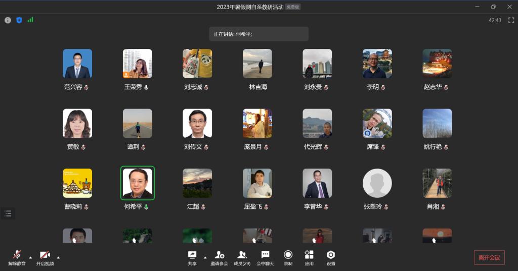 2023年8月13日晚,best365官网入口注册测控自动化系在线上举行了扩大教研活动。参会人员除测自系教师外,还特邀到何希平书记,林吉海,谭荆,席锋,张翠玲等担任测控专业必修课程的老师参会。