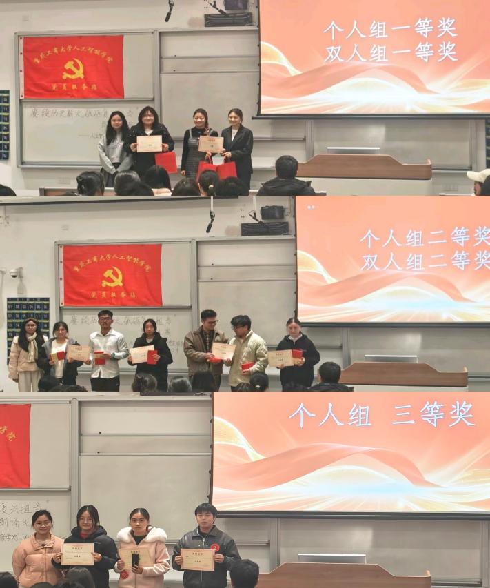 比赛采用“评委现场打分+观众线上投票”的综合评分机制,从主题内容、语言表达、舞台表现、综合印象等维度进行专业评审。经过激烈角逐,个人组与双人组分别评选出一、二、三等奖若干名。赛后,评委代表对本次比赛进行点评,肯定了选手们的精彩表现与活动的深远意义,并寄语青年学子将历史传承转化为行动自觉,在青春赛道上勇担复兴重任。随后的颁奖环节中,评委嘉宾为获奖选手颁发荣誉证书与奖品,鼓励他们继续以声音为桥,传递红色力量。