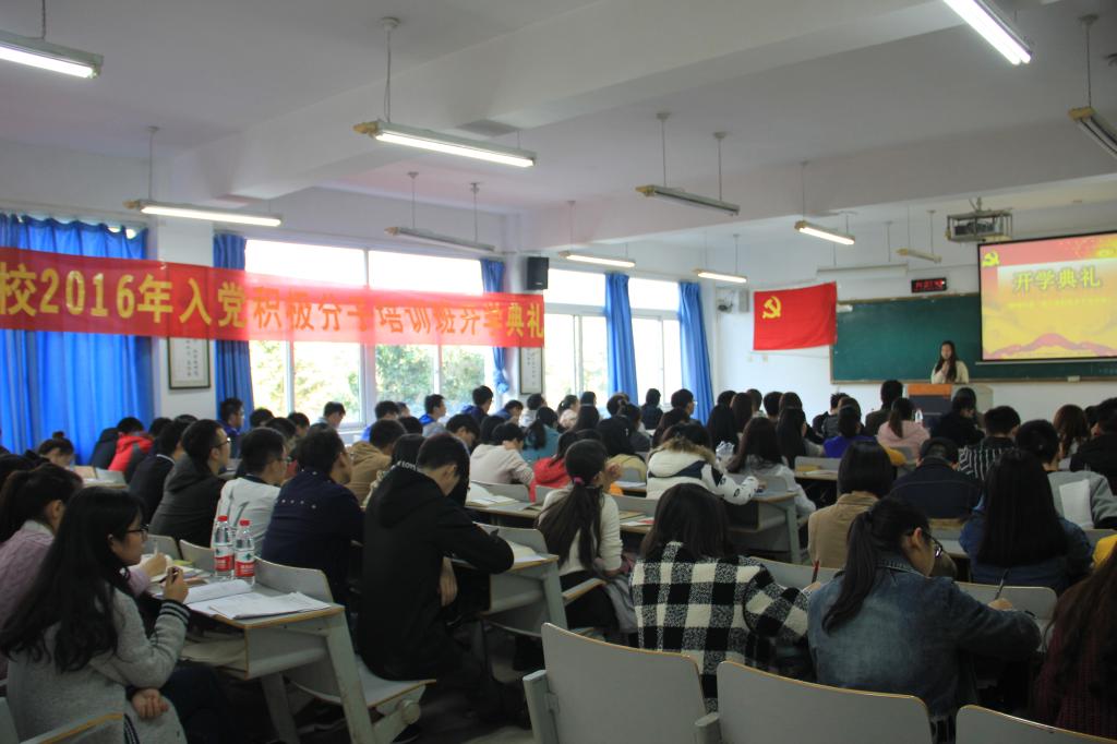 典礼由分团委书记刘昶老师主持。首先全体起立合唱《国际歌》,随后党总支陈亚惠副书记致辞,强调党课培训的重要性,要求同学们借此次党课培训机会,树立远大的理想,以自身的实际行动来践行党的宗旨,为靠近党组织而努力。随后公司代表15级自动化2班蒋涵玥同学上台发言,表明了向党靠拢的决心。之后,陈亚惠围绕“十八届六中全会”的主题,为同学们进行本次党课培训第一讲的授课,让我们认真学习十八届六中全会全面从严治党的精神。随后,徐秀慧老师与刘昶老师分别为同学们讲述了《中国共产党的指导思想》与《中国共产党的性质、宗旨、纲领和现阶段任务》。晚上19点整,黄亚果老师与李菁老师先后讲述了《中国共产党党员》与《中国共产党的组织原则和纪律》。详细又不乏生动的讲解,让同学们受益匪浅。