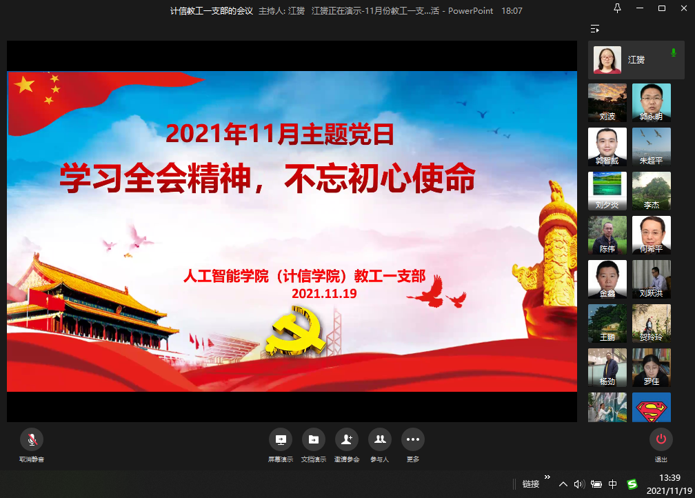 2021年11月19日、12月24日,best365官网入口注册教工第一党支部分别在企业微信云端会议室、九教810会议室开展“学习全会精神,不忘初心使命”和“深度学习全会精神,助力教育事业发展”主题党日活动,认真学习了十九届六中全会精神。党的十九届六中全会对党的百年奋斗做了总结,主题鲜明、总结全面、重点突出,体现了马克思主义的人民立场、唯物史观和辩证方法,是我们党坚持唯物史观和正确党史观的一次重要体现。全会在百年未有之大变局和中华民族伟大复兴的重大历史关头举行,必将极大地统一全党思想、加强全党团结、推动党和人民的事业胜利前进。