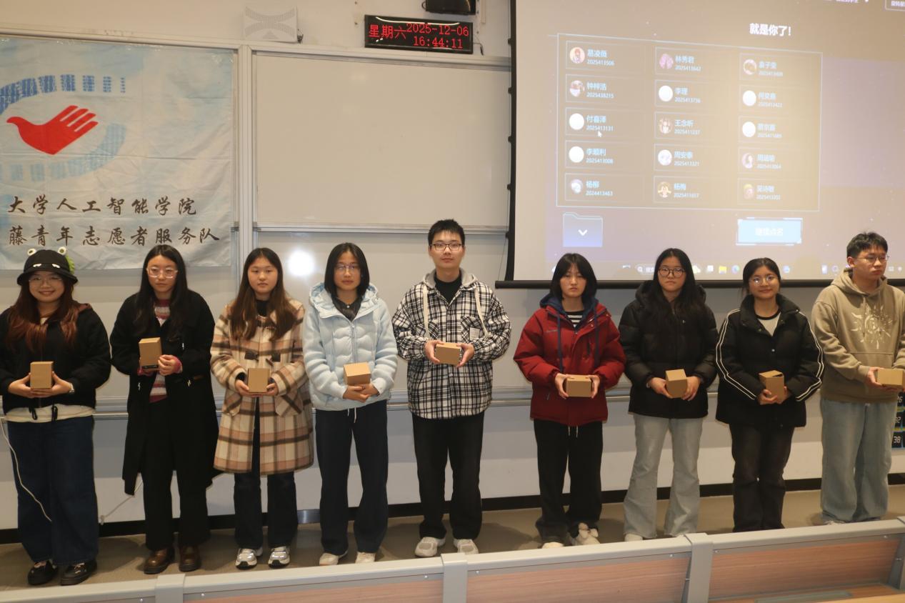 活动现场,学习氛围热烈而浓厚。在PS学习环节,从最基础的工具使用入手,逐渐掌握了图片修饰、创意设计等高级技巧,一幅幅原本平凡的图片在同学们的巧手下焕发出新的生机。PPT环节中,大家深入学习了如何构建清晰的逻辑框架。PR环节则让同学们沉浸在视频剪辑的世界里,从素材的导入、剪辑,到特效的添加、音频的处理,同学们亲身体验了将零散素材转化为生动故事的完整过程。而在最后的Web开发模块,志愿者们通过实际案例演示和手把手教学,让同学们对网页构建的流程和技术有了直观而深刻的认识。为了让同学们在紧张的学习中保持良好的状态,活动特别在每两个学习模块之间设置了抽奖环节。三次抽奖活动共产生了24位幸运同学,精美的礼品不仅为同学们带来了惊喜和欢乐,也有效缓解了学习的疲劳,进一步增强了活动的趣味性和互动性。