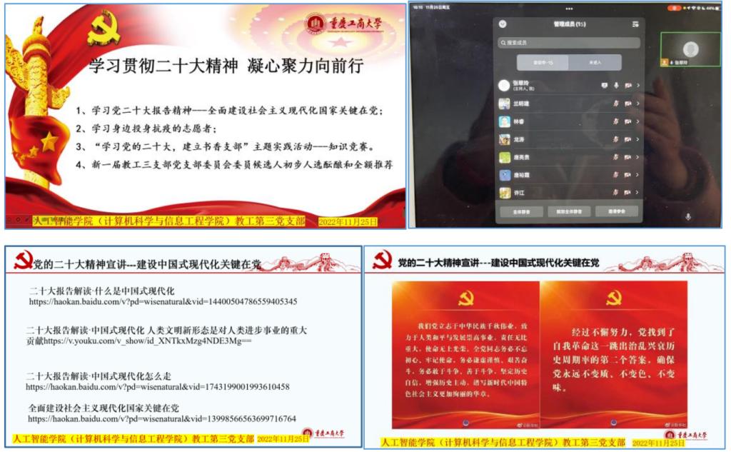 为深入学习贯彻党的二十大精神,把支部党员的思想统一到党的二十大精神上来,把力量凝聚到党的二十大确定的各项任务上来,11月23日下午4:00,best365官方网站best365官网入口注册(best365官网入口注册)教工第三党支部召开党员大会,通过企业微信组织全体党员开展了“党的二十大精神---全面建设社会主义国家关键在党”的专题学习,会议由支部书记张翠玲同志主持。