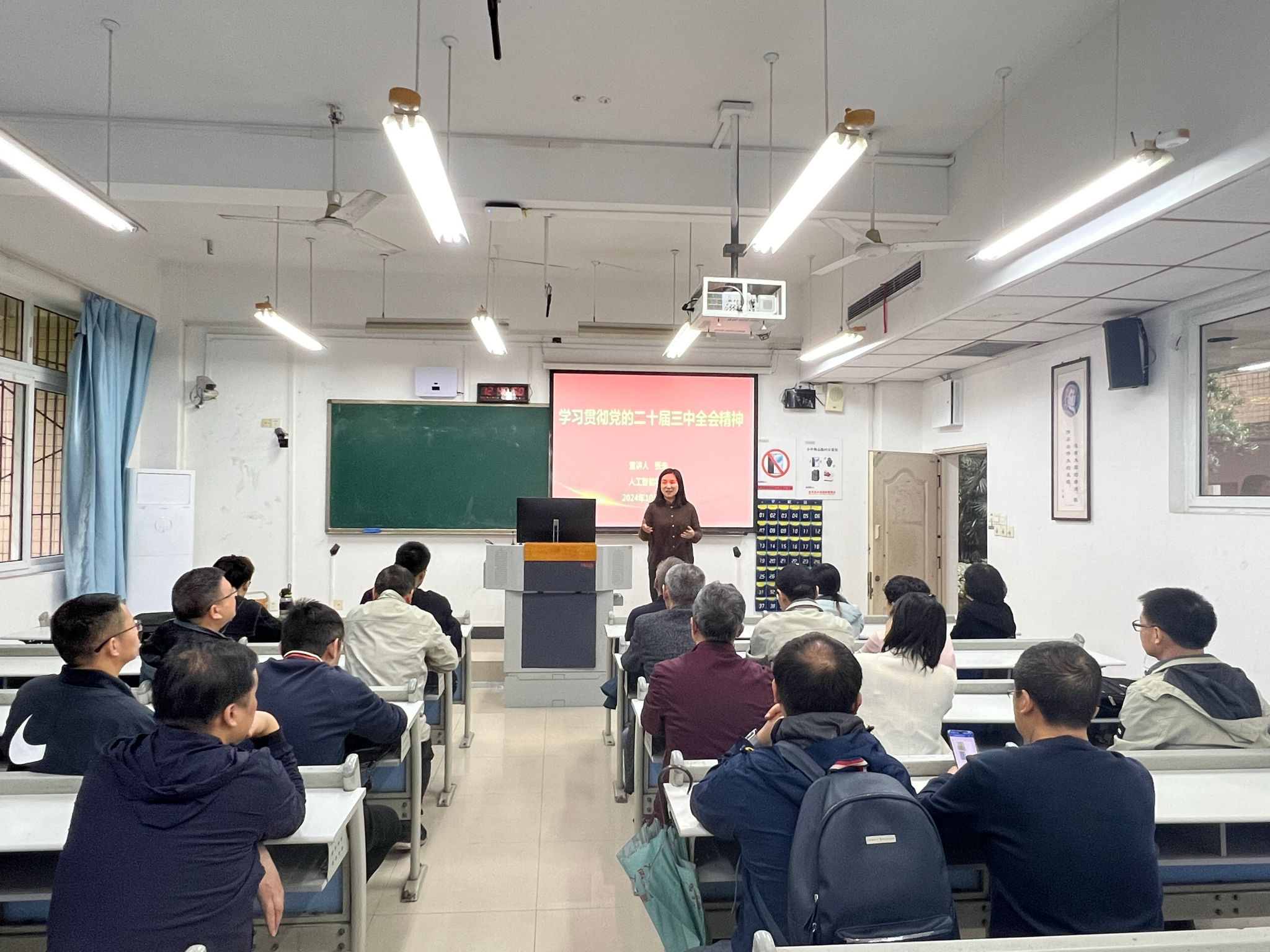为深入学习党的二十届三中全会精神,扎实做好全会精神贯彻落实,10月10日中午,人工智能公司党委副书记张未在慧智楼90201教室为教工第二党支部全体党员、测控与自动化系、电子系全体教师作了一次全面细致精彩的全会精神宣讲。