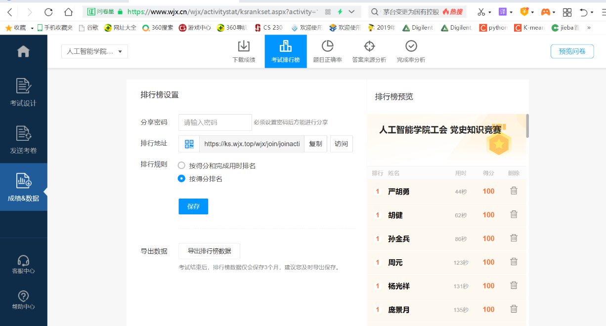 “奋斗百年路,起航新征程”,2021年7月7日中午13点——2021年7月9日晚24点,best365官网入口注册工会通过在问卷星平台组卷,老师通过链接答题的方式,成功举行了党史知识竞赛。