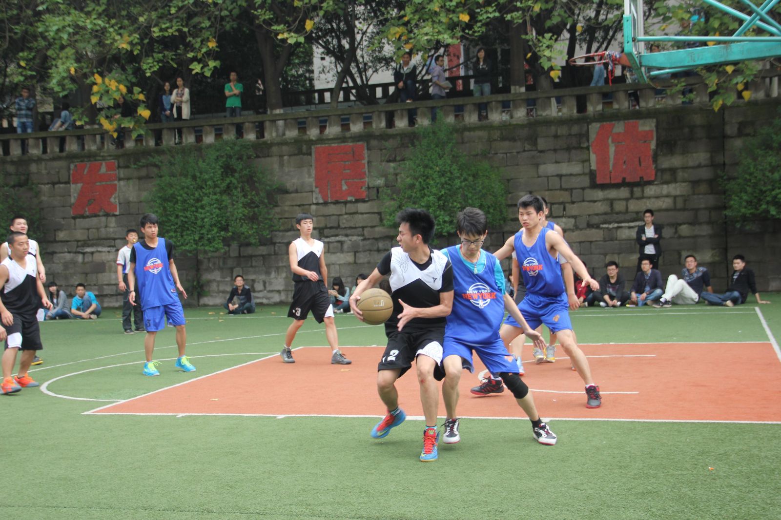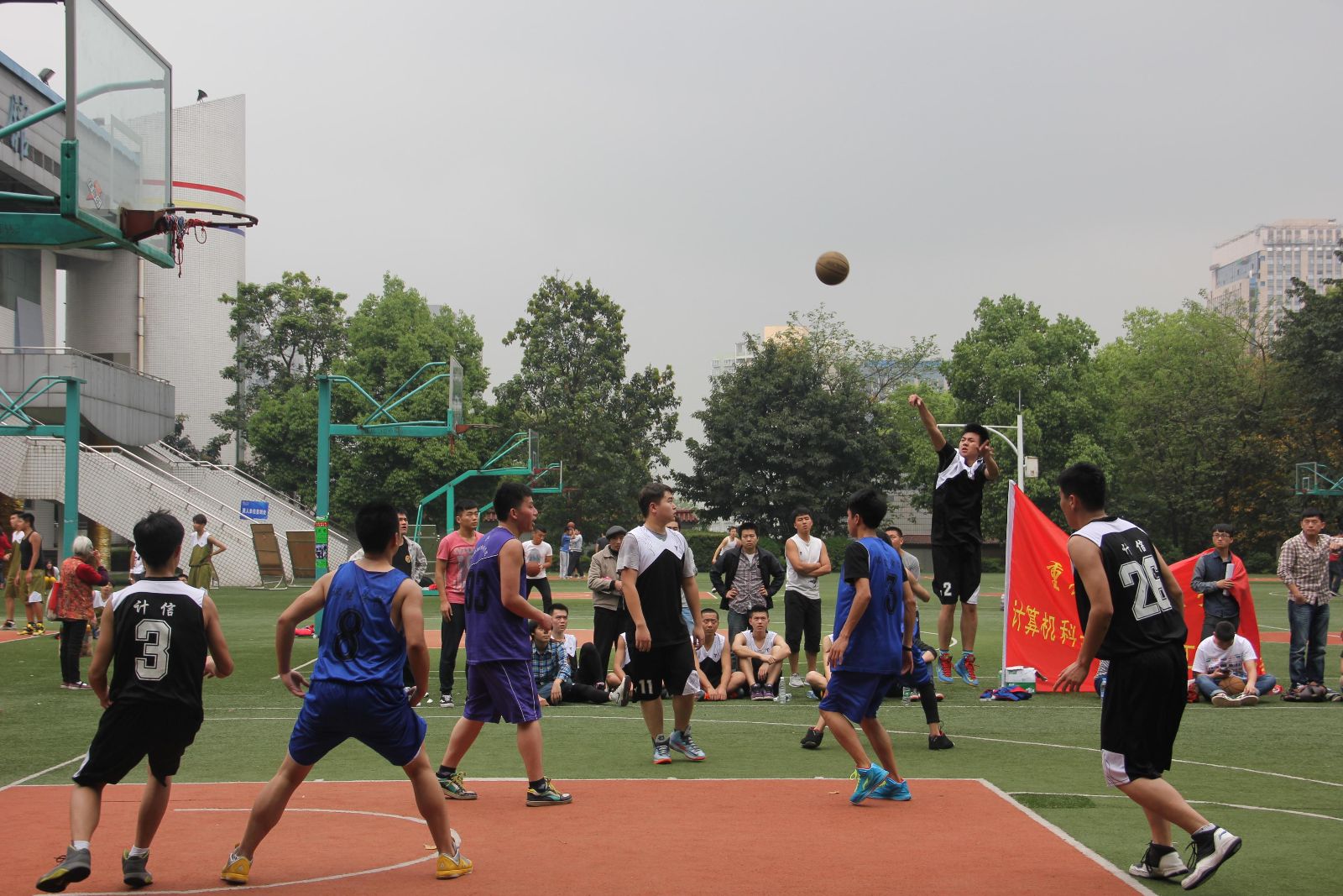 2014年4月12日上午11点,计信公司男篮与环生公司男篮在南区篮球场进行了“工商杯”小组赛第一场的比拼。