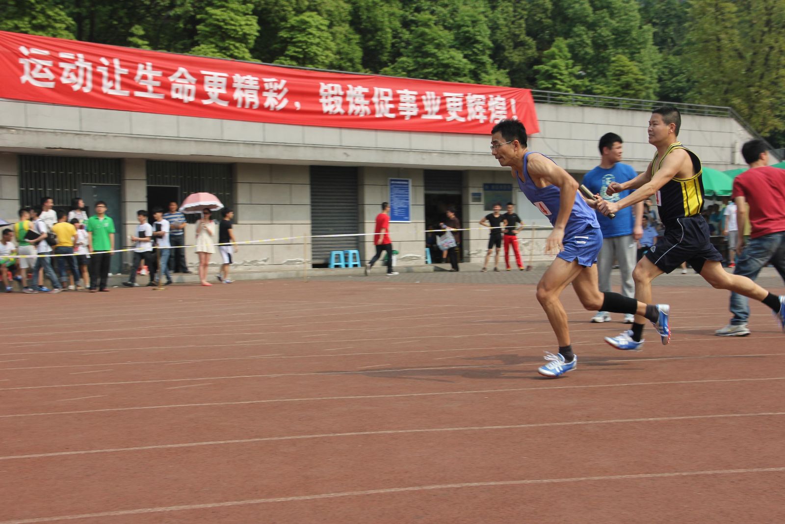 还记得18日那一个个挑战地心引力的运动员吗?凝神屏息,你全神贯注,直视前方;厚积薄发,你猛然跃起,暴发力量。如猎豹般的冲刺,如羚羊般的跳跃,你是如此的耀眼瞩目。振奋人心的4*400米和20*60米决赛在下午如火如荼的展开了,一只接力棒,在你手中接过,一份坚持的力量,在你我手间传递,直视前方,你乘风而跑,因为你明白荣誉的桂冠就在前方。计信公司的老师们努力奔跑着,毫不逊色于同学们,他们没有了讲台上的严肃,更添了一丝亲切和活泼,同学们为他们加油,为他们卖力嘶吼,老师们也是没有辜负同学们的加油声,获得了优异的成绩。