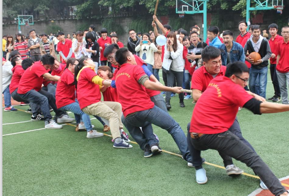 计信公司的同学们在拔河比赛中团结一心,最终获得胜利