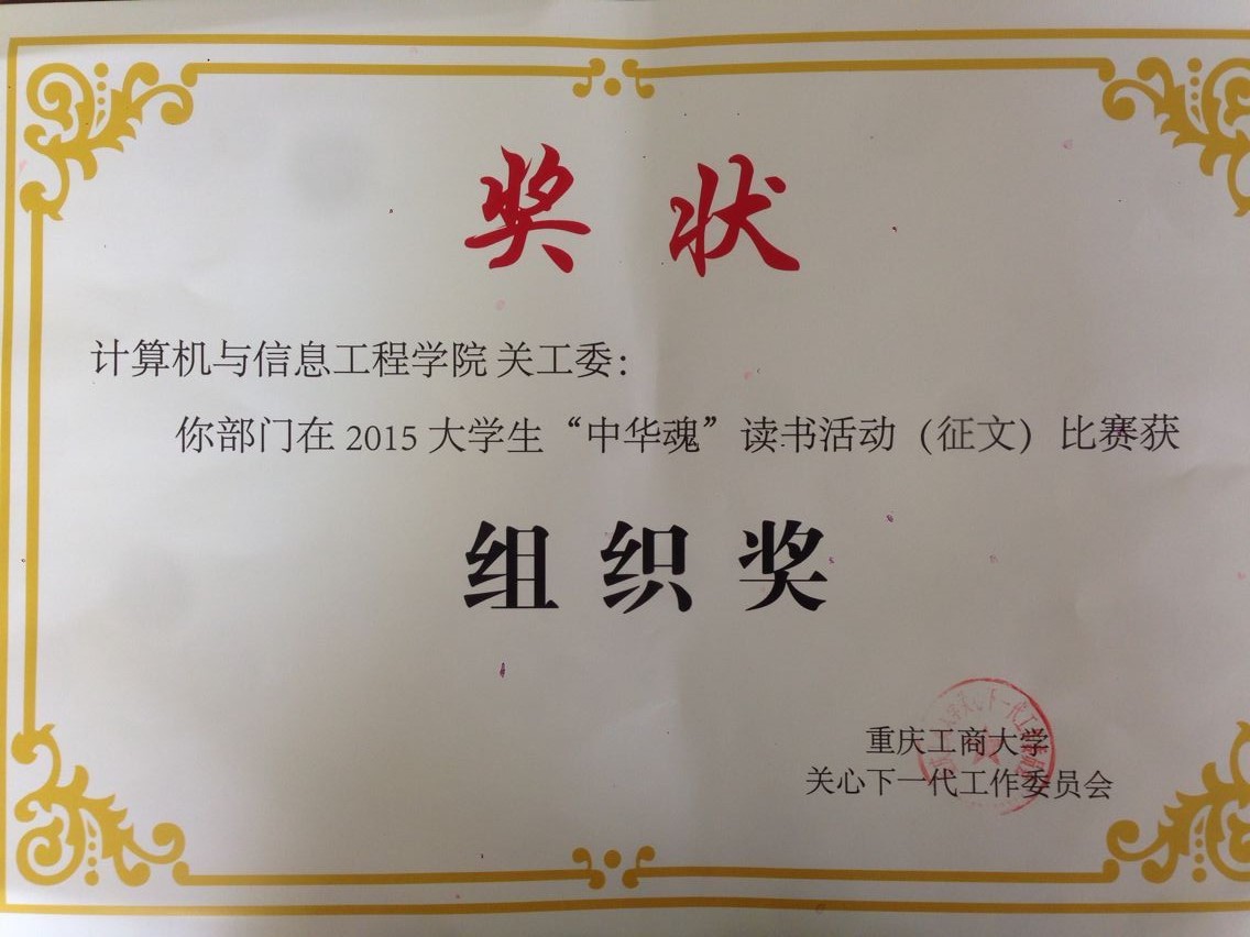 best365官网入口注册关工委在2015年老员工“中华魂”读书活动(征文)比赛中荣获组织奖。公司黄亚果、徐秀慧老师荣获优秀指导老师奖。杨恩福、唐毅、蒋添三位同学的文章荣获二等奖、陈珊、刘铭扬、何晓、蔡晓斌四位同学的文章荣获三等奖。