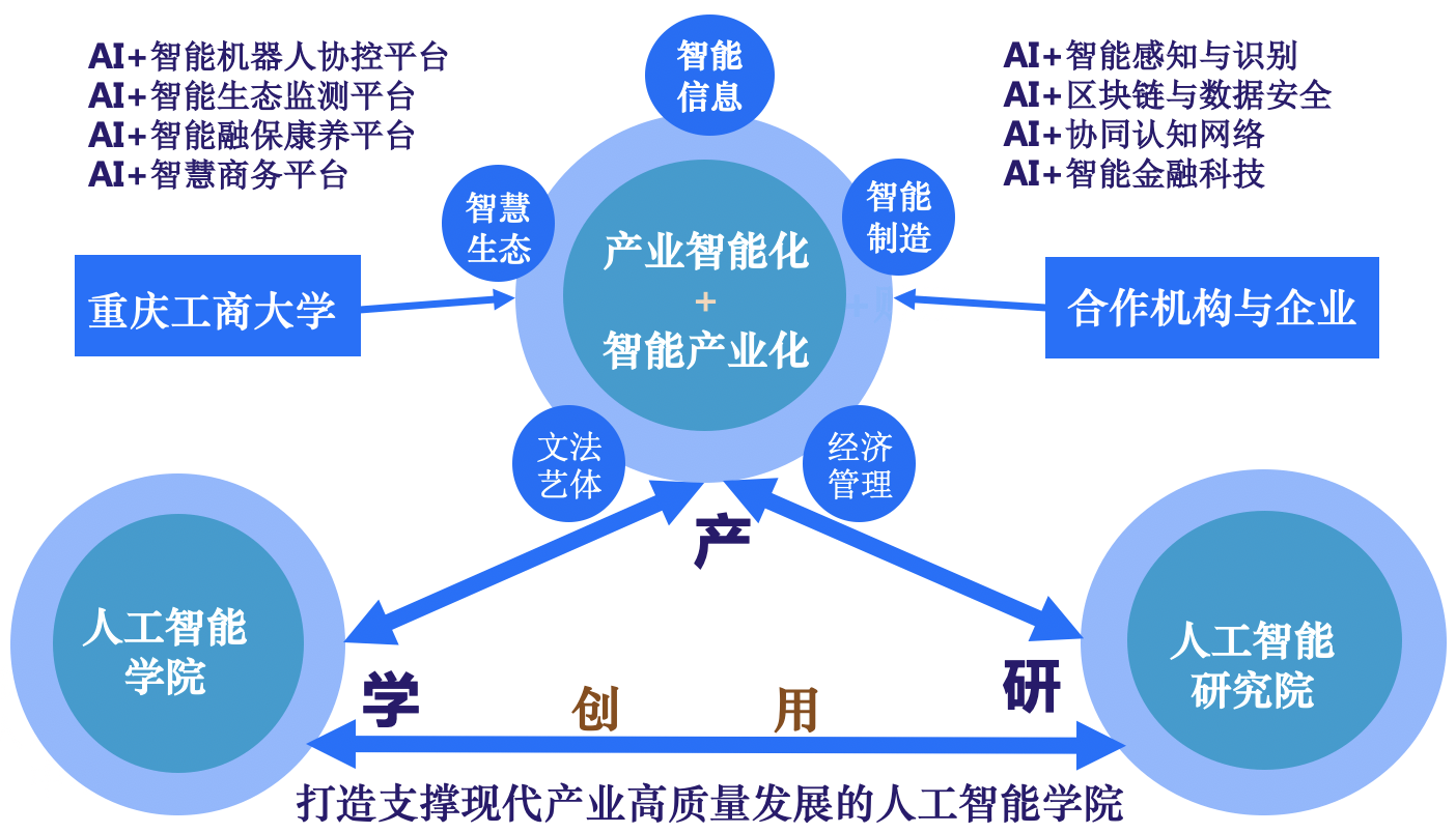 公司以习近平新时代中国特色社会主义思想为指引,秉承“知行致智、行稳致遠,立德树人、治学兴邦”的使命与愿景,致力于将人才培养、科学研究和技术服务厚植于产业智能化革新和智能产业化发展的实际需求之中,先后与华为、科大讯飞、腾讯云计算、甲骨文、中软国际、浪潮通软等 20 余家企业建立了稳定的校企合作关系,形成了应用型、复合型智能信息技术卓越工程科技创新创业人才“产学研创用”协同培养的鲜明特色。
