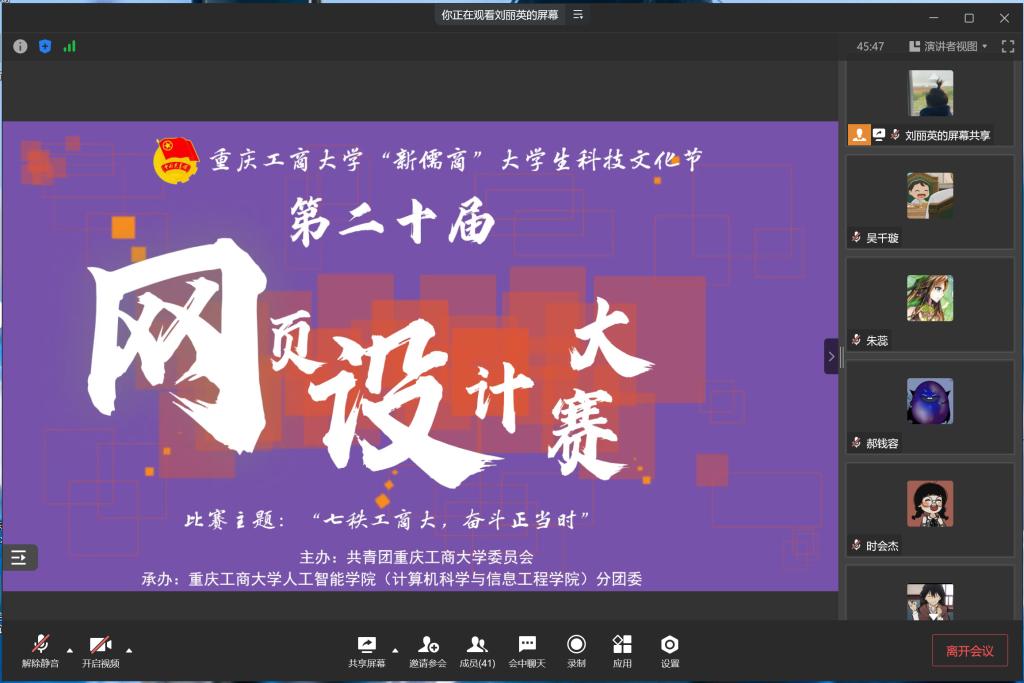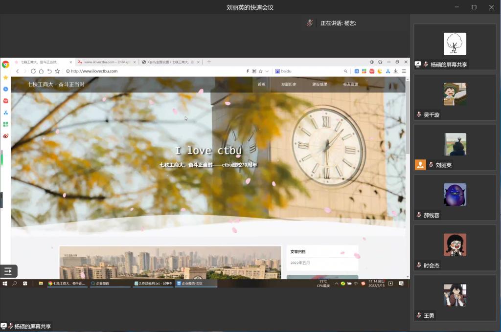 为充分展示“含弘自强 经邦济民”的重工商大精神以及70年接续奋斗的历史风貌,为员工提供学习交流、技术合作的平台,best365官方网站公司第二十届网页设计大赛于5月15日上午十点在企业微信以线上会议方式举行。best365官网入口注册杨艺教授、2019级员工张云驰担任评委。本次网页设计以“七秩工商大,奋斗正当时”为主题,围绕公司发展历史、建设成果、员工资源等方面进行网页图像、相关素材及功能进行设计实现。