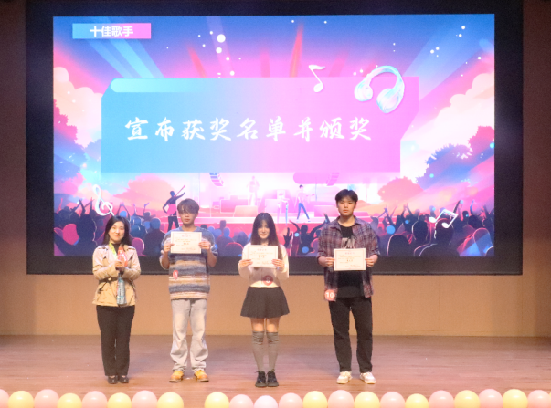 经过组队合唱、个人独唱两轮激烈比拼,通过评委和观众现场打分,最终刘慧娟、高俊毅、张书豪、潘龙顺、杨建英、邓文娟、刘林昂、舒策、王雅倩、彭荟铭等同学荣获“十佳歌手”称号。