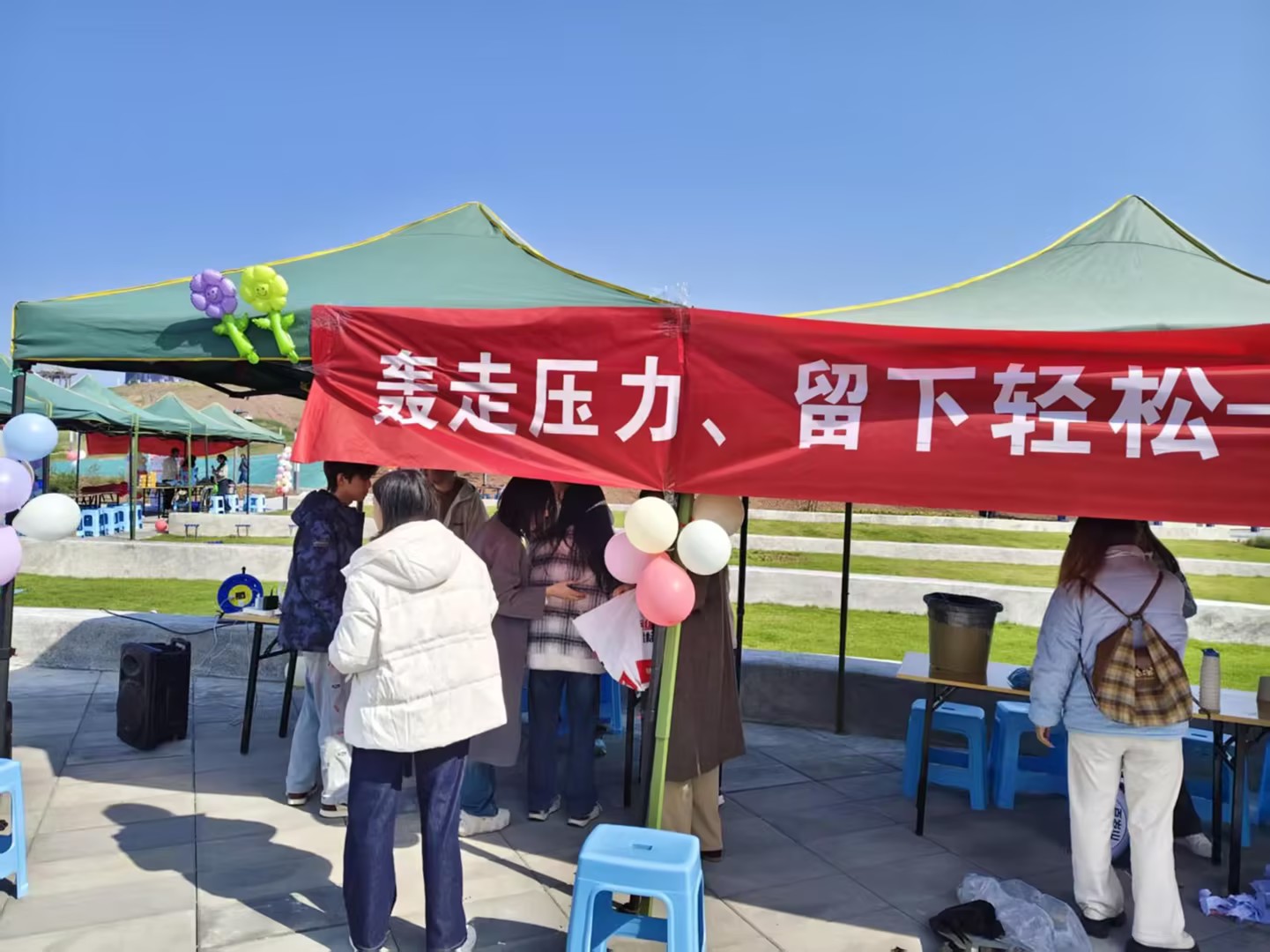 “把压力想象成眼前的纸杯,让每一次拍击都成为情绪的释放!”在工作人员引导下,同学们在彩色便签上写下焦虑源,折成纸团塞进炮筒。倒计时3、2、1——集体“开火”,烦恼纸团被气流稳稳送入垃圾桶,完成一场充满仪式感的“情绪爆破”。现场还设置了精彩的互动抽奖环节,惊喜好礼不断送出,欢笑声与欢呼声交织。
